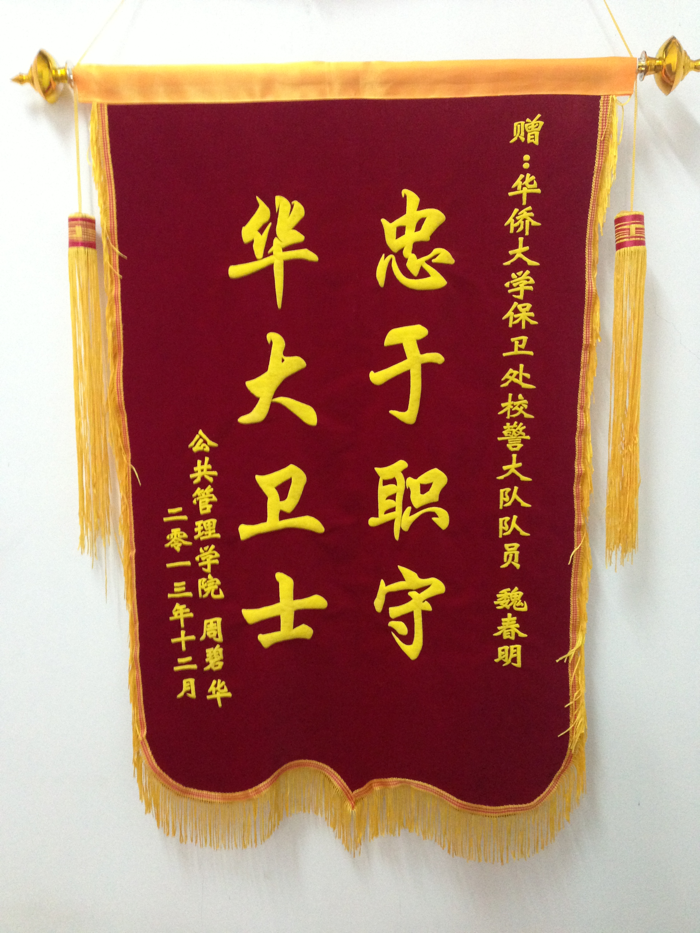 12月24日17时许,新南小区门岗值班校警队员魏春明,在执勤过程中,发现一形迹可疑男子,并在该男子外衣内截获一部被盗的黑色联想笔记本电脑。