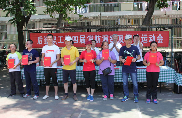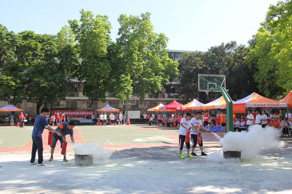 6月11日上午,后勤工会和后勤与资产管理处联合在泉州校区华丰楼前篮球场举办后勤职工第四届消防演练及趣味运动会。